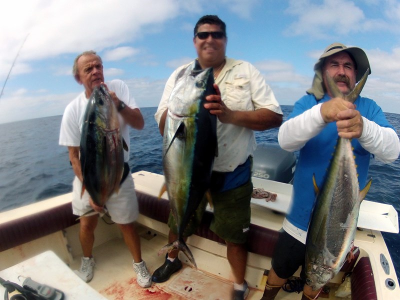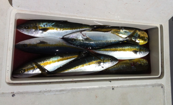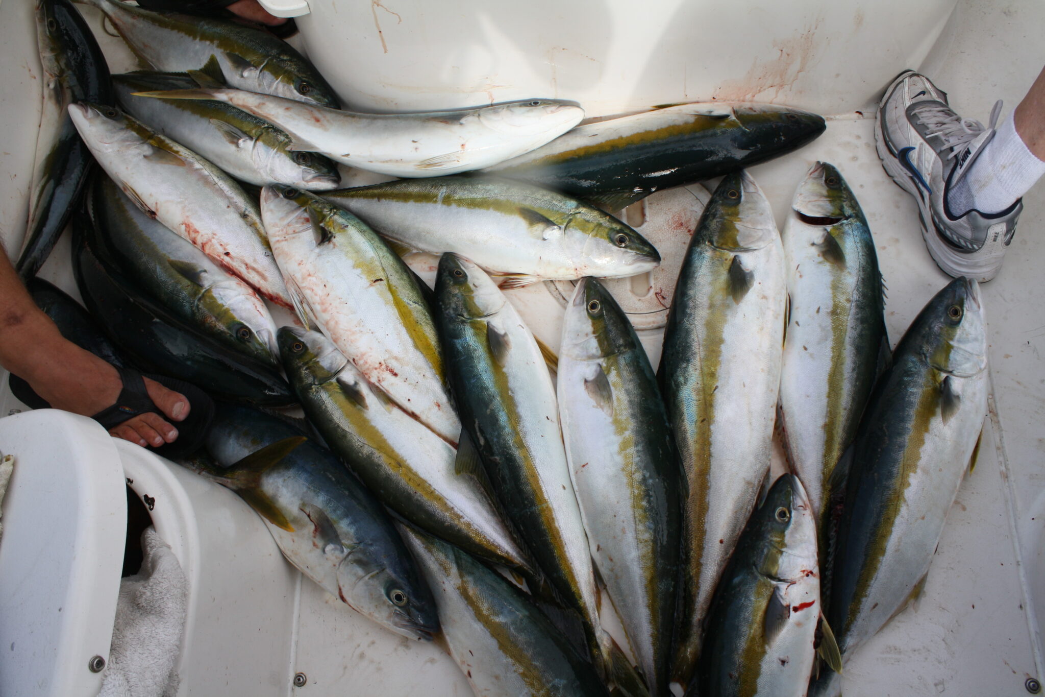 Yellowtail from 10 to 20lbs are roaming up and down from Gold Bluff to Purse Siene Rock.
