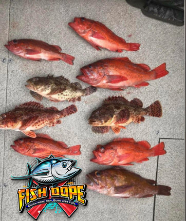 At Box Canyon the rockfish bite is pretty good with guys getting really good numbers of reds. Some of these are nice big ones too. The guys are also pulling up bocaccio, whitefish, treefish, barber poles and other mixed red rockfish. These are coming from the stones in 220 to 240 feet.