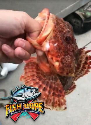 All parties got sardines from Nacho. Lively and healthy, with no reports of squid on the horizon. Carnage didn’t answer channel 11 and didn’t answer the phone, so I’m not sure if they are lighting up this weekend. All spots were producing, but the biggest Rockfish and sculpin came from the 150 and a bit further north just outside King Harbor break wall stones. The two Long Beach Harbor shelf sculpin spots, provided by Fish dope didn’t let us down. Of course, Dbl. dropper loops with squid strips on top of 10 ounces or more was the ticket. Didn’t get picked up much on Jigs. For smaller skiffs, drifting seems like a better idea then trying to anchor in this fast current and quick chop.
